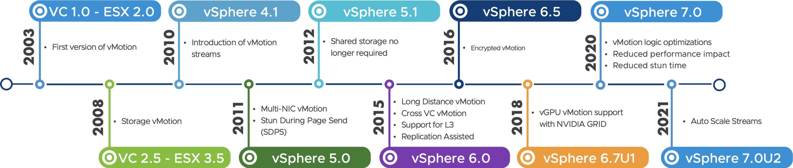 Scaled VMware vSphere vMotion operations: vCenter Server 7.0 Update 2’den başlayarak, vSphere vMotion, tek bir vMotion VMkernel arabirimine sahip 25 GbE, 40 GbE ve 100 GbE gibi yüksek hızlı network tam olarak yararlanacak şekilde otomatik olarak uyum sağlamaktadır.