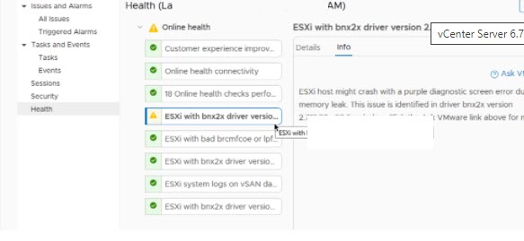 vSphere durum denetimiŞu an itibariyle, vSphere Health, bir vSphere ortamında çalıştırılabilen 30 farklı sağlık kontrolü içermektedir.