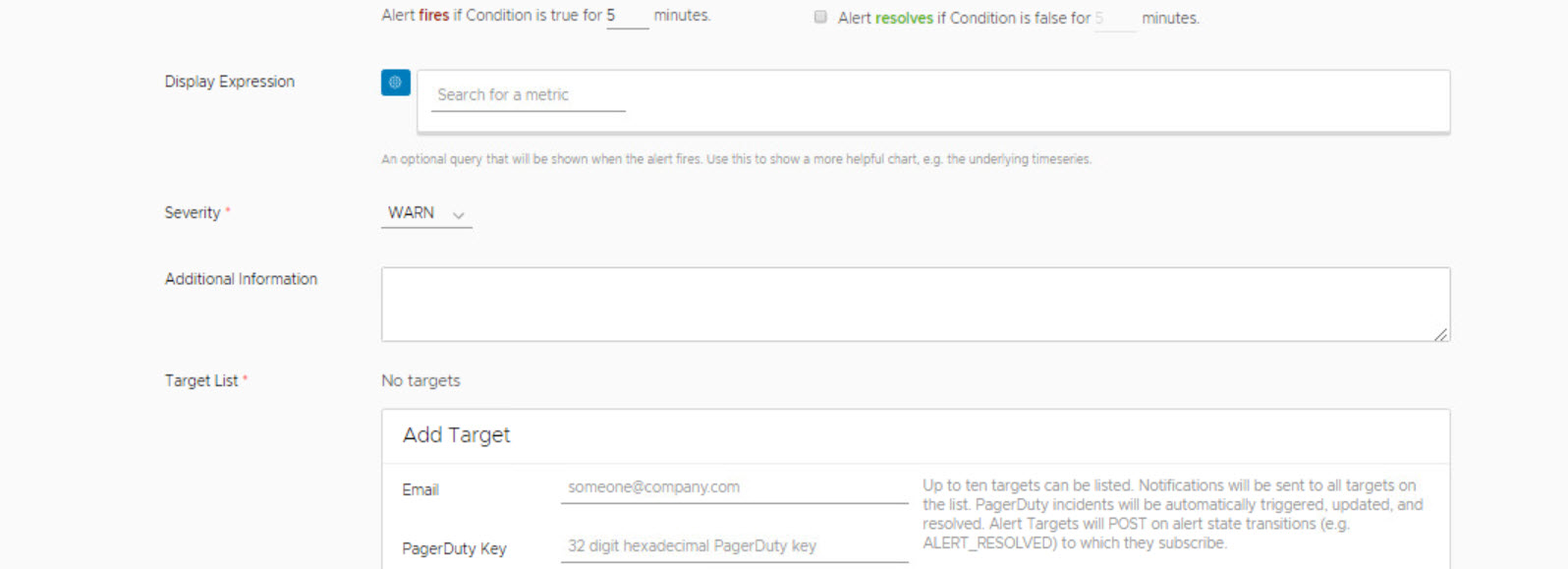 Wavefront’ta uyarılar yalnızca basit eşikler değil ya da kontrolünüz çok düşük olan bir kara kutu değildir.Uyarılar, Wavefront Query Language tarafından yazılmış ve tarafından yürütülen gerçek sorgulardır ve her dakika Sorgu tarafından döndürülen serilerin herhangi bire bir yapılandırılabilir art arda dakika sayısı, uyarı ateşlenir ve uyarı hedefleri bildirilebilir.