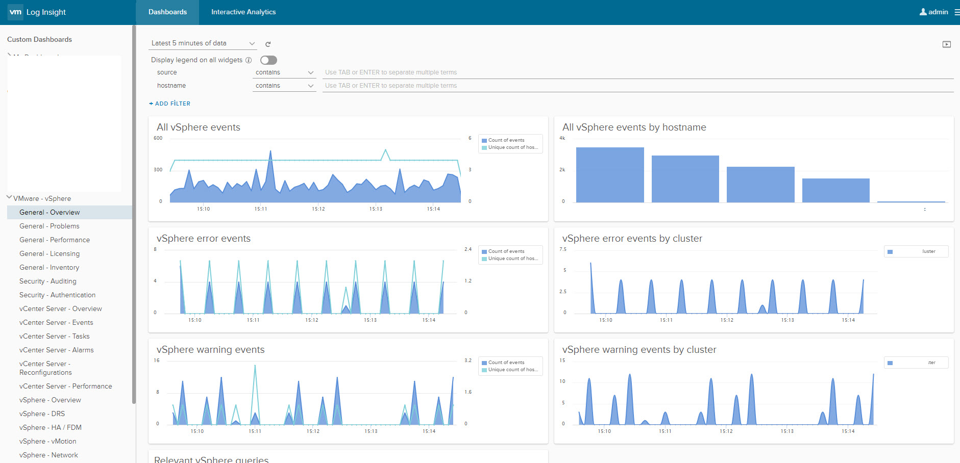 Ekledikten sonra https://ipadresiniz/ giriş yaparak Dashboards / VMware-vSphere tıkladığımızda vcenter’ımız ile ilgili log’lar gelecektir. Log’ların gelmesi 5-10 dakika sürmektedir.