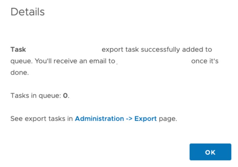 Unlimited Log Export Management, Dışa export işlemlerinin tamamlanması için e-posta bildirimlerini etkinleştirebilir veya bir dışa aktarma görevinin ilerlemesini izleyebilirsiniz. Bir görev sıraya alınmışsa, görevin sıradaki konumunu görebilirsiniz.