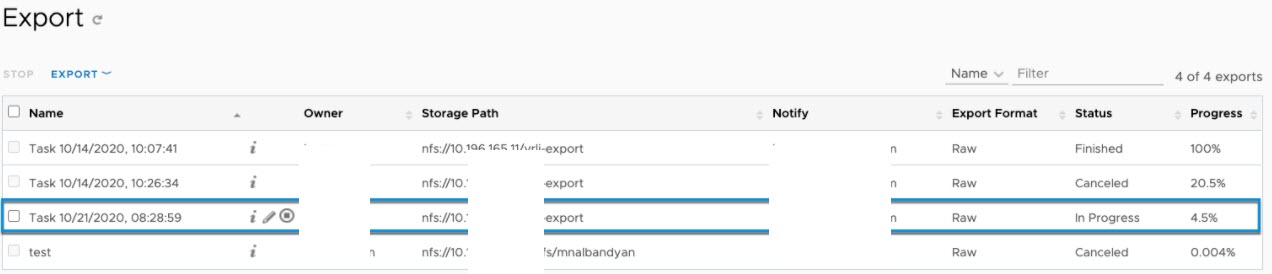 Monitor Status, Dışa aktarma işleminde görevlerinin ilerlemesini kontrol edebilirsiniz.