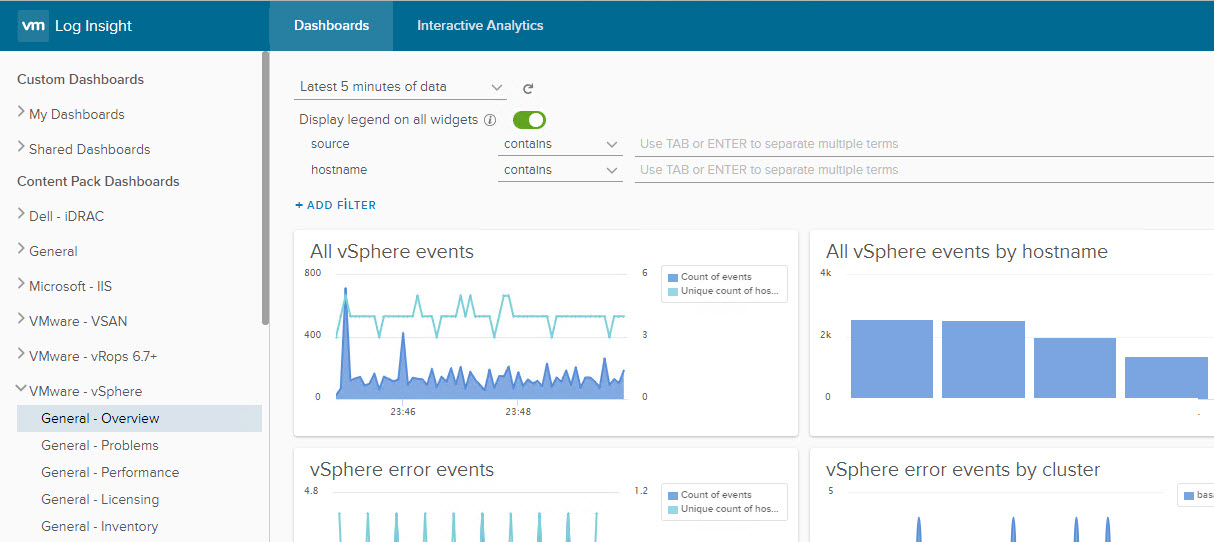 Karşımıza log insight dashboards sayfası gelecektir.