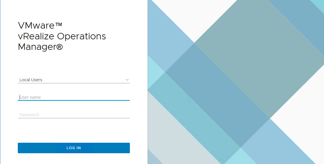 Aşağıdaki resim’deki gibi VMware vRealize Operations Manager sayfamıza giriş yapıyoruz.
