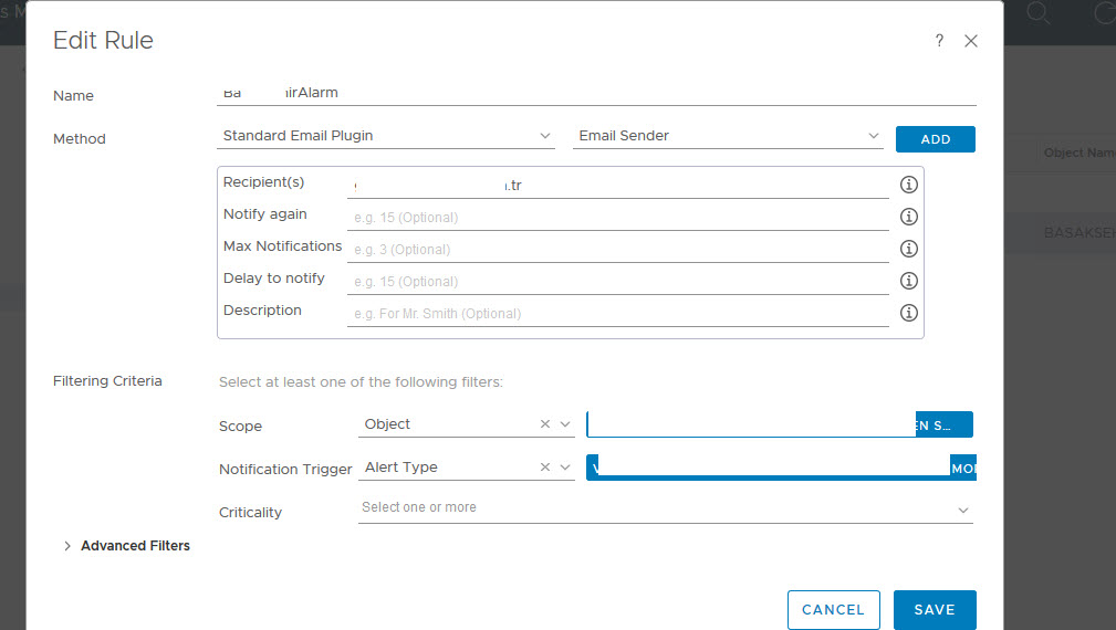 Merhaba değerli arkadaşlar, bu makalede Vmware ürünü olan vRealize Operations Manager’da bildirim yapılandırmasını anlatacağım.