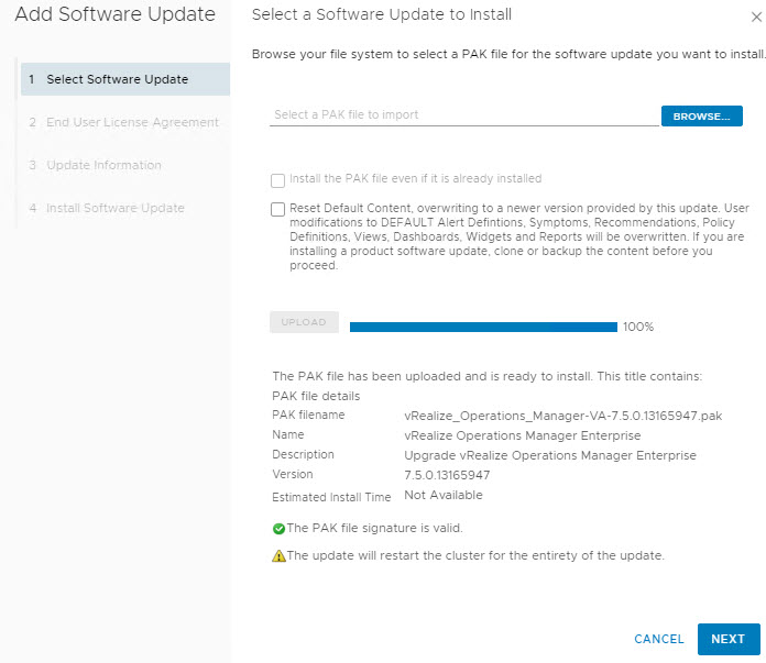 vRealize Operations Manager 7.5 versiyonun update işlemini yapmış oluyoruz.