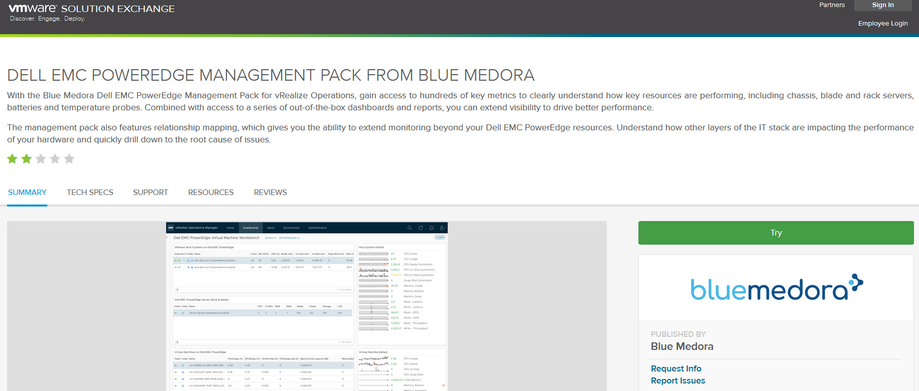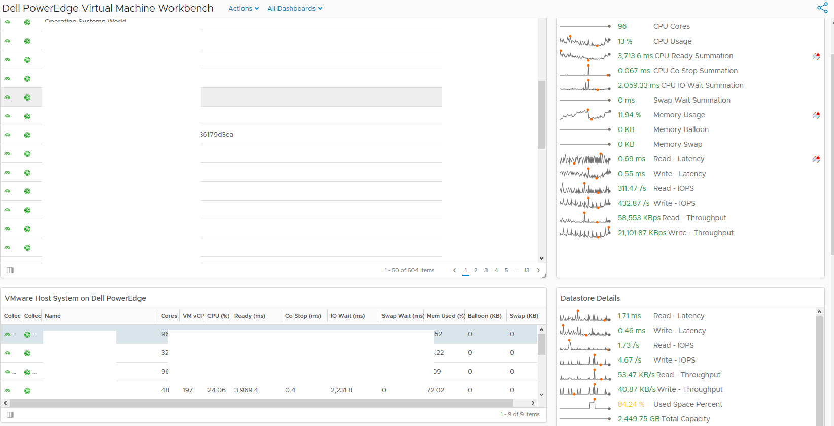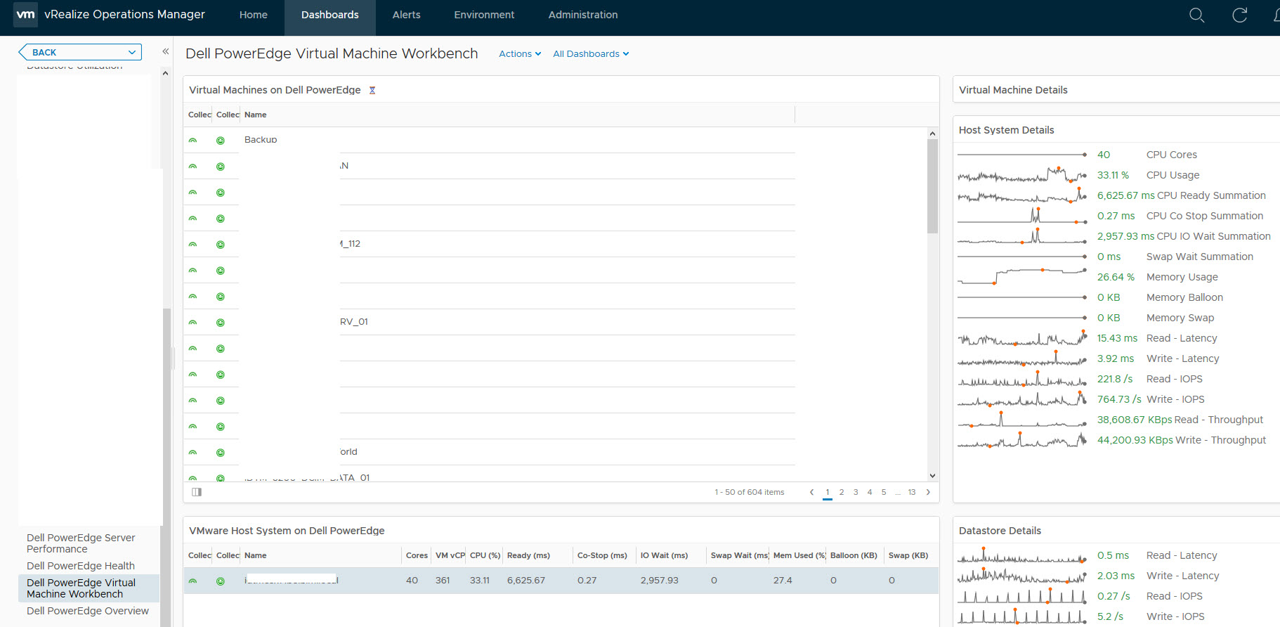 Dell EMC PowerEdge sunucularının, kasanın ve alt bileşenlerin sağlığını, güç tüketimini, ısıyı ve kritik olayları vurgulamaya yardımcı olacak panolar dahil olmak üzere vRealize Operations Manager (vROps) ile eşleştirebilir , herhangi bir sorunun nereden kaynaklanabileceğini belirlemeye yardımcı olmak için sorun giderme için daha derin bir incelemeye olanak sağlar, ayrıca envanter, mevcut ürün yazılımı seviyeleri, garanti detayları ve mevcut ürün yazılımı yükseltmeleri ve bunların kritikliği dahil olmak üzere, vROps aracılığıyla donanım raporlaması da alabilirsiniz.