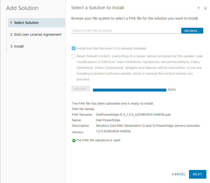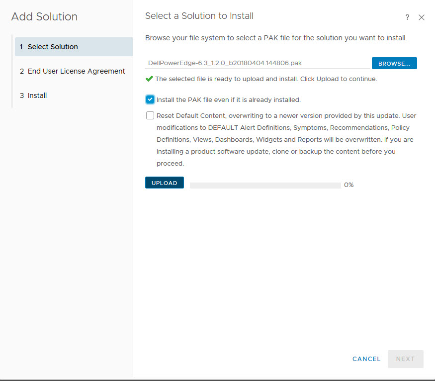 Örnek olarak , Dell PowerEdge solutions eklemeyi anlatacağım. vRealize Operations Manager için OpenManage Yönetim Paketi (vROps için OMMP), sanal ortamınızdaki donanım bilgilerini eşleştirmenize izin verir, Dell EMC PowerEdge sunucuları ve VMware vCenter için OpenManage Entegrasyonu (OMIVV) tarafından yönetilen şasi için sağlık durumu ve donanım ölçümleri sağlar .
