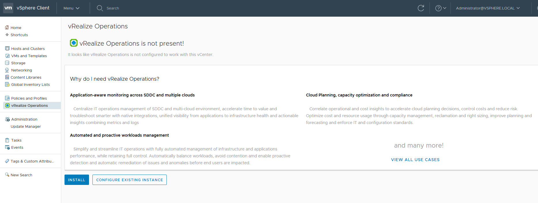 Merhaba değerli arkadaşlar , bu makalede vSphere Web Client 6.7 giriş yaptıktan sonra içinde varsayılan eklentisi olarak gelen vRealize Operations Install edip , kurulumunu anlatacağım.