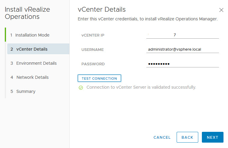 vCenter Details bölümünde ise mevcut kullandığımız vcenter sunumuzun ip , username ve password bilgilerini giriniz.