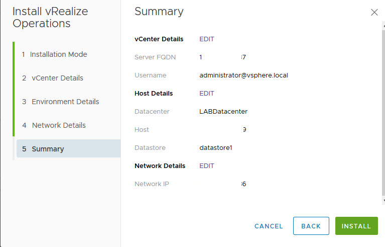 Network Details’da bölümünde ise , indirdiğimiz vRealizeOperation appliance sunucunun ip bilgilerini buraya giriş yapabilirsiniz.