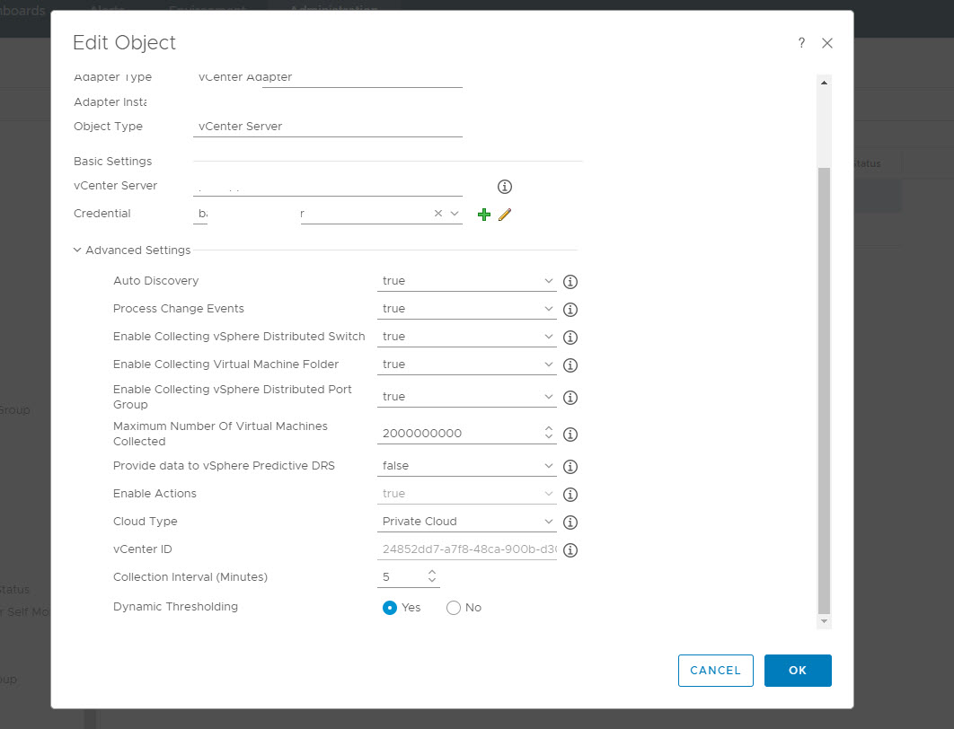 Açılan sayfada sol menüde bulunan Configuration / Inventory Explorer tıklayalım. Daha sonra vSphere World altında bulunan vCenter Adaptör’ümüzü seçtikten sonra Edit object ayarlar menüsüne giriş yapalım. Eğer ortamınızda birden fazla vCenter Adaptör’ünüz var ise bu işlemi her birine ayrı ayrı uygulamanız gerekecektir.