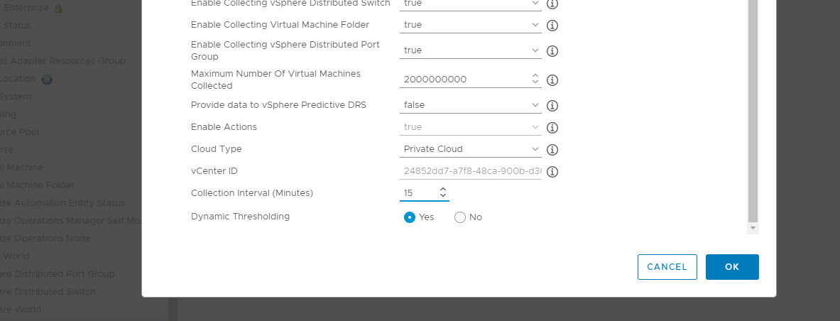 vRealize Operations Manager varsayılan olarak her beş dakikada bir ortamınızdan veri toplar. Bu, çoğu ortam için uygundur.Bu değerin arttırılması, depolama için vRealize Operations talebini artıracak ve ek verileri işlemek için hesaplanacaktır. Diğer taraftan, bu değerin arttırılması, kapasite kısıtlı ortamlarda istenebilecek depolama ve hesaplama talebini azaltacaktır.Veri Toplama aralıkları her bağdaştırıcı sisteme göre değiştirebilir.