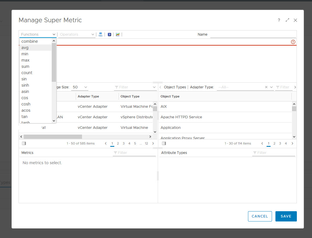 Süper Metrikler genellikle Dinamik Tiplerin vROPS ile aynı şekilde kabul edilmektedir.Ancak eğer VROPS metriklerine aşina iseniz ve excel kullanabiliyorsanız, bir Süper Metrik oluşturabilirsiniz.
