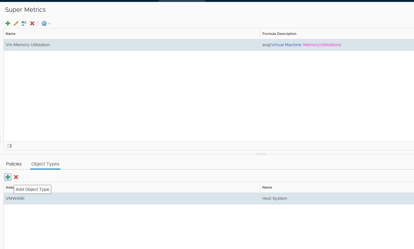 Süper Metrik’imiz oluşturulmuş olmasınıza rağmen, henüz bir nesne türüne eklenmedi ise ,Metrik içinde ne kullanılması gerektiğini ve formül için hangi ayrıntıların kullanılması gerektiğini tanımladık ancak şimdi kaynak nesne ile, bu durumda “Ana Sistem” nesnesini ilişkilendirmemiz gerekiyor. Bunu Süper Ölçümler ekranının alt kısmındaki Add Object Type’ı artı simgesini kullanarak yapıyoruz.
