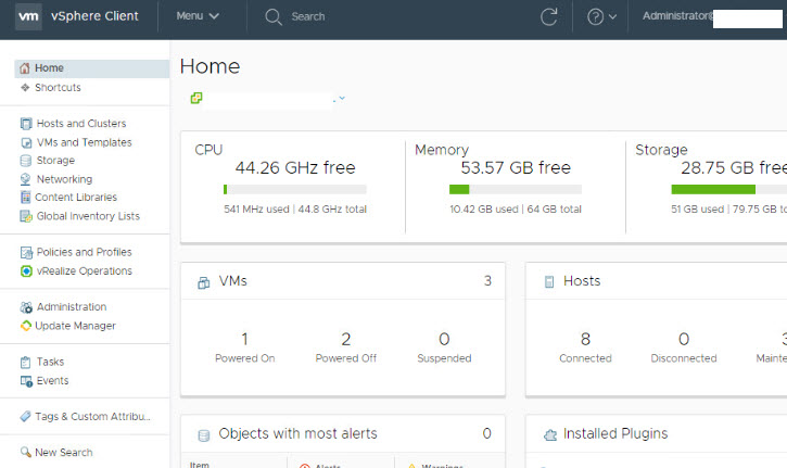Aşağıdaki resimde’de gördüğünüz üzere Home sayfasında sol tarafta bulunan Host and Clusters tıklayalım.