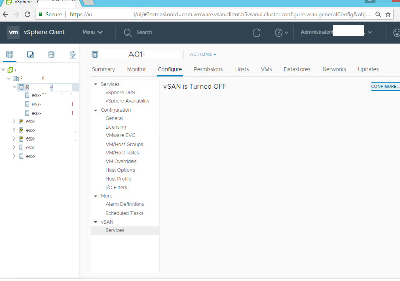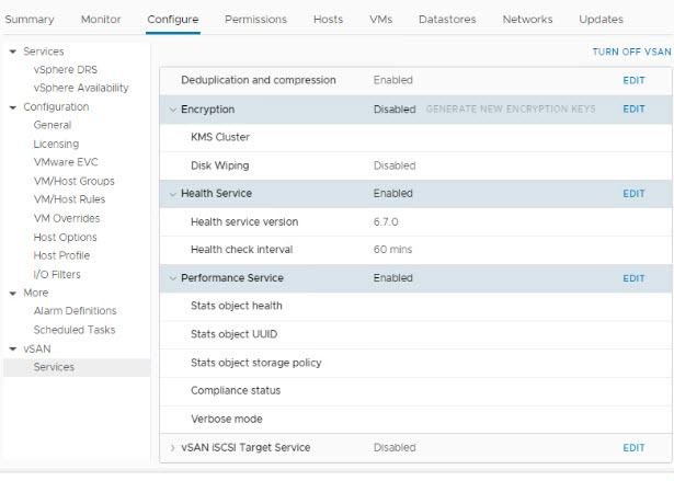Configure/vSAN/Services’den sağlık ve performanslarının ayarlarını yapabilirsiniz.