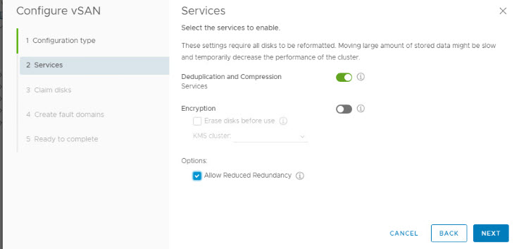 Deduplication and Compression’a enable duruma getirdiğimizde belirli bir disk grubu içindeki gereksiz veriler tek bir kopyaya indirgenmiş olur. Deduplication ve Compression’u istediğiniz zaman enable veya disable edebilirsiniz ancak bu VMware’in best practices’lerinde çok önermemektedir.