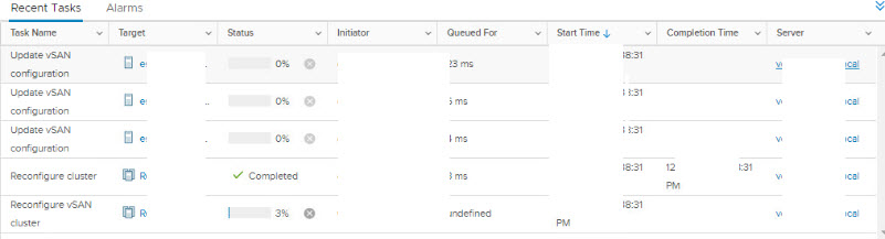 Recent tasks’ta hemen oluşturma işlemlerin başladığını görebilirsiniz.