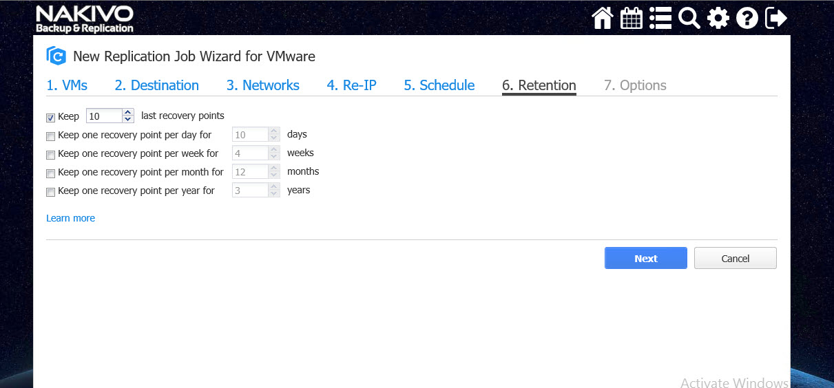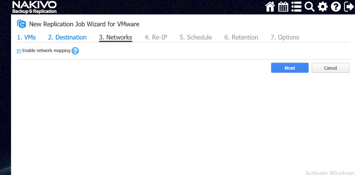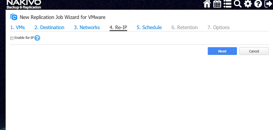 Burada sunucumuzu karşı tarafa replikasyonu yaptıktan sonra ip ayarlarını buraya girebiliriz. Ben sunucumu karşı tarafa replikasyon olduktan sonra ilgili vlan’ı kendip atayıp , bu şekilde manuel ip vereceğimden dolayı bir değişiklik yapmadan next diyerek devam ediyorum.