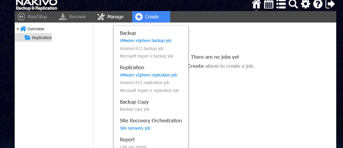 Grubumu oluşturduktan sonra Create/Vmware vSphere replication job tıklayınız.