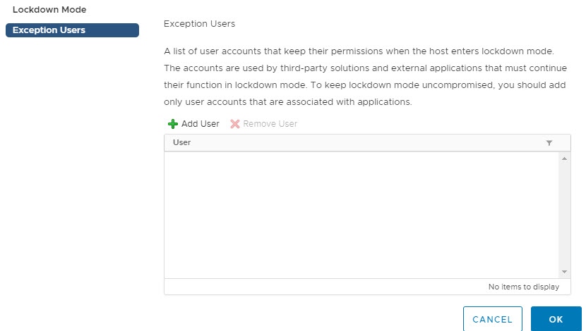vSphere 6.7 Lockdown mode ile esxi hostunuzun erişimini sınırlayarak hostlarınızın güvenliğini artırabilirsiniz. Bu mod açıldığında, ESXi hostunuza  vSphere CLI komutları, vSphere Management Assistant (vMA) veya vSphere İstemcisi kullanarak erişim sağlayamazsınız.  Hostunuza erişim sağlamak için ise vCenter Sunucusu veya Direct Console User Interface (DCUI) kullanabilirsiniz.