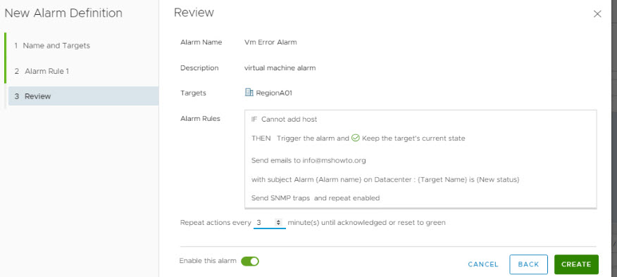 Altyapıyı izlemek, BT ekibinin tüm kaynakları iyi yönetmesi her zaman önemli bir görevdir. VSphere sanal altyapısı kullanıyorsanız, sanal vm’lerinizi, host’larınızı ve vcenter yapınızın durumunlarınıda izlemeniz gerekmektedir. VMware kullanıcıları vCenter’daki belirli olaylar,koşullar ve durum hakkında bilgilendirilmek için, vsphere alarm altyapısını kullanmaktadır. Alarmları oluşturmadan önce, bunları yapılandırmamız gerekmektedir. Alarm oluşturulduğunda alarm hakkında doğrudan e-postanızda bir posta alacak şekilde ayarlayabilirsiniz.
