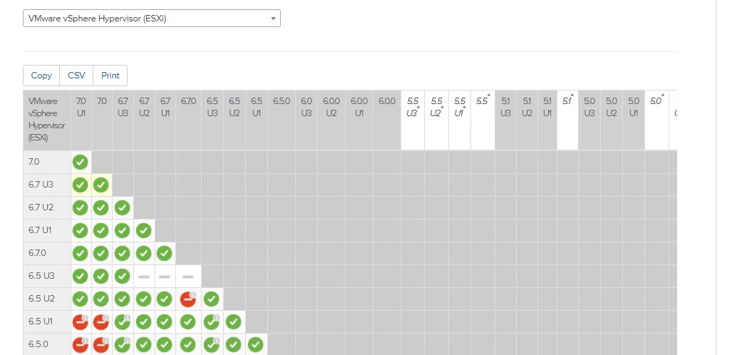 Öncelikle ortam uyumluluğunu kontrol etmek için vSphere ESXi 7.0 U1 ‘e yükleyebileceğimiz tabloyu buradan kontrol ediyoruz.