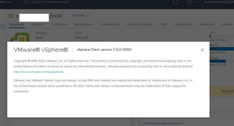 Gerekli kontrolleri sağladıktan sonra vSphere 7.0 sayfamızı açalım.