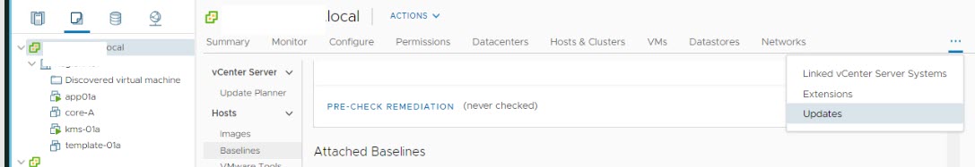 Mevcut vCenter’ımızı seçerek sağ menüde açılan updates tıklayalım.