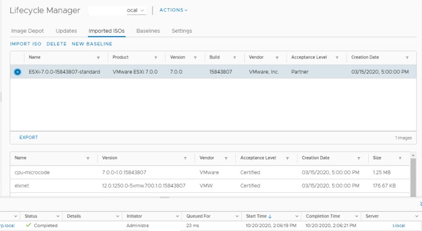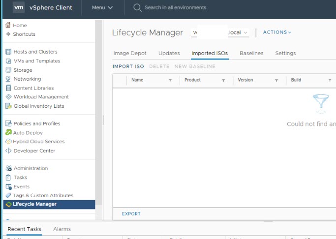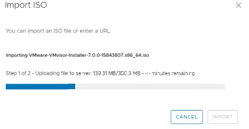 Lifecycle Manager > Imported ISO’s , indirdiğimiz Esxi iso’yu import edeceğiz.